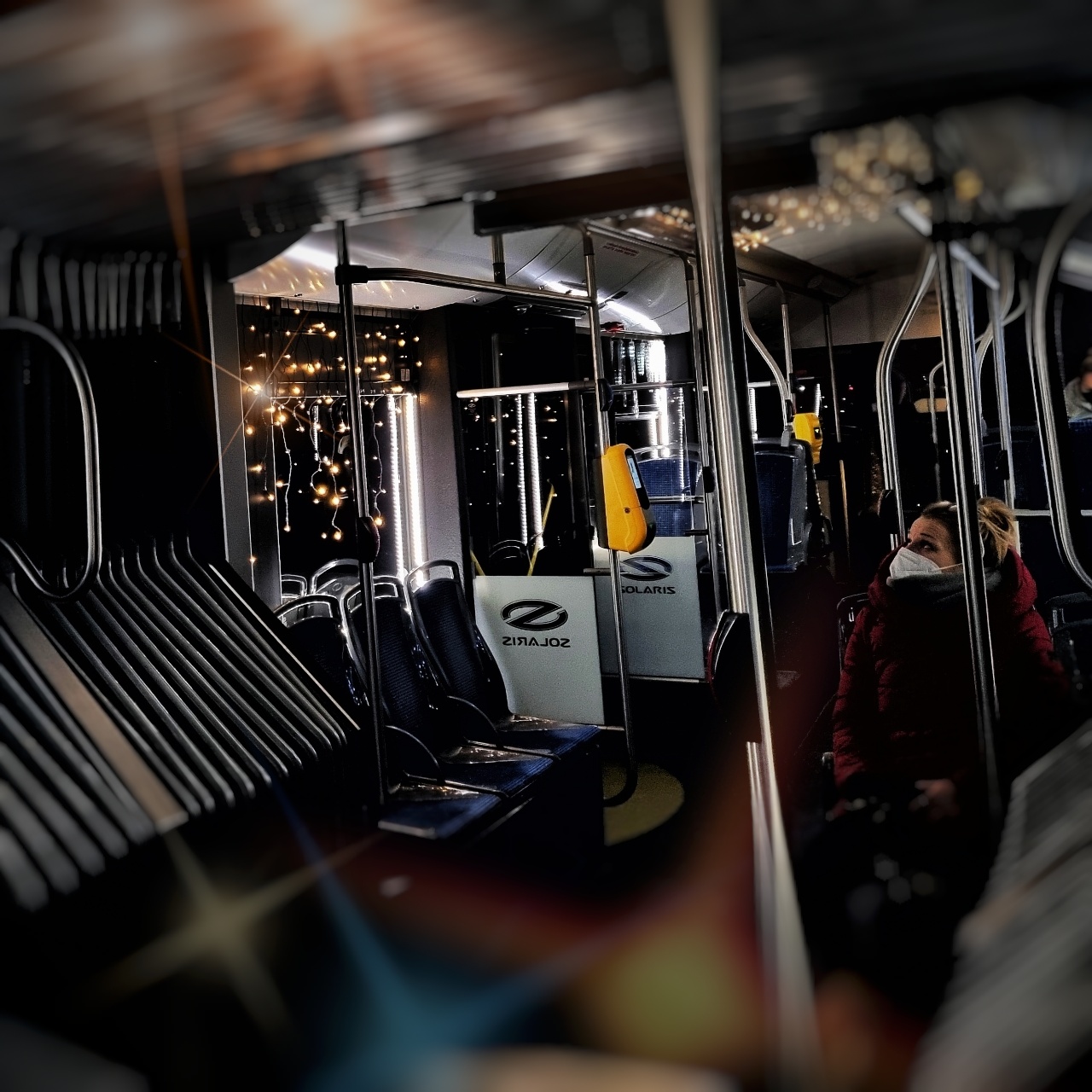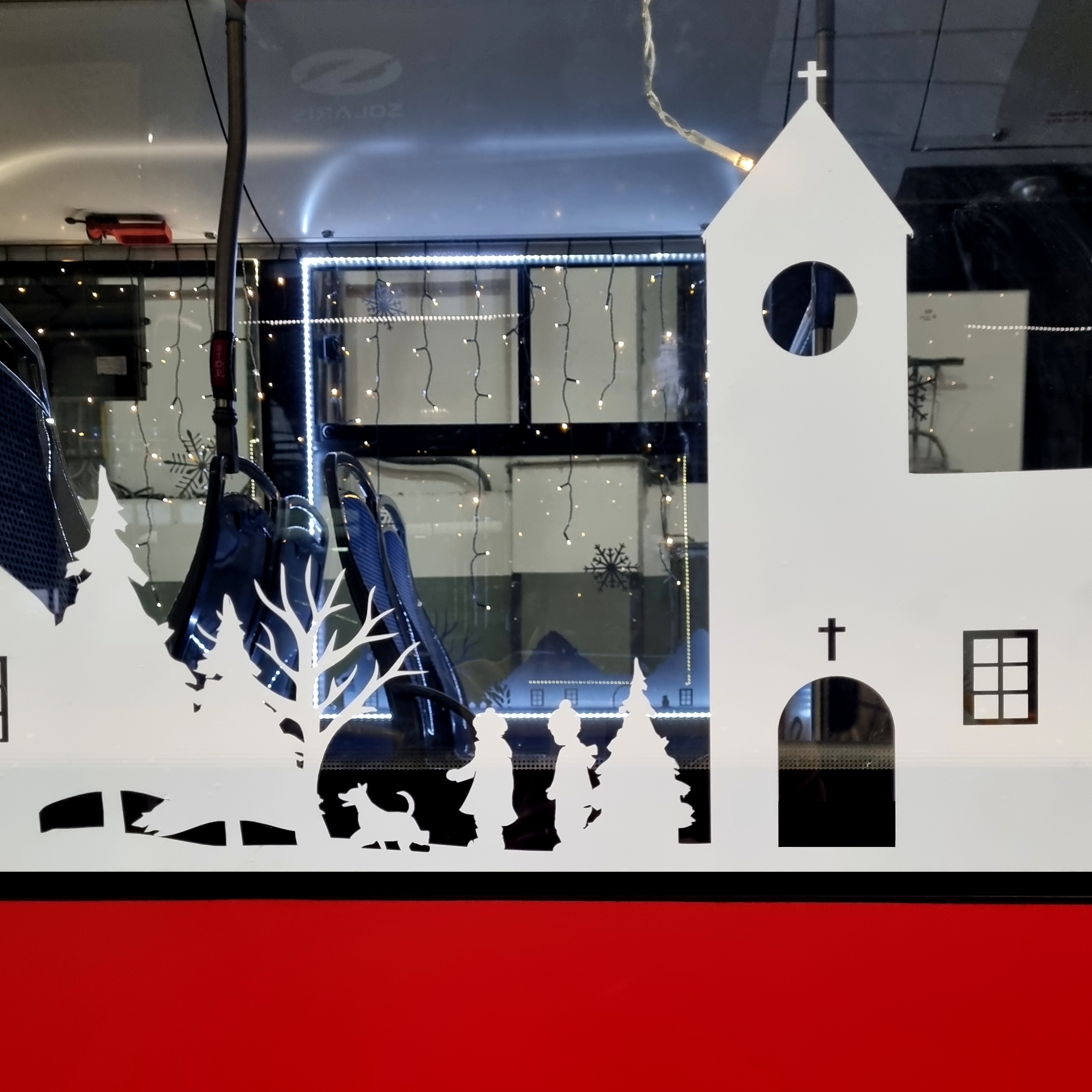Do vozu elektromechanici nainstalovali světelnou výzdobu pro podtržení sváteční atmosféry - vytvořili například světýlkový strop nebo "ledovou jeskyni" v kloubové části.