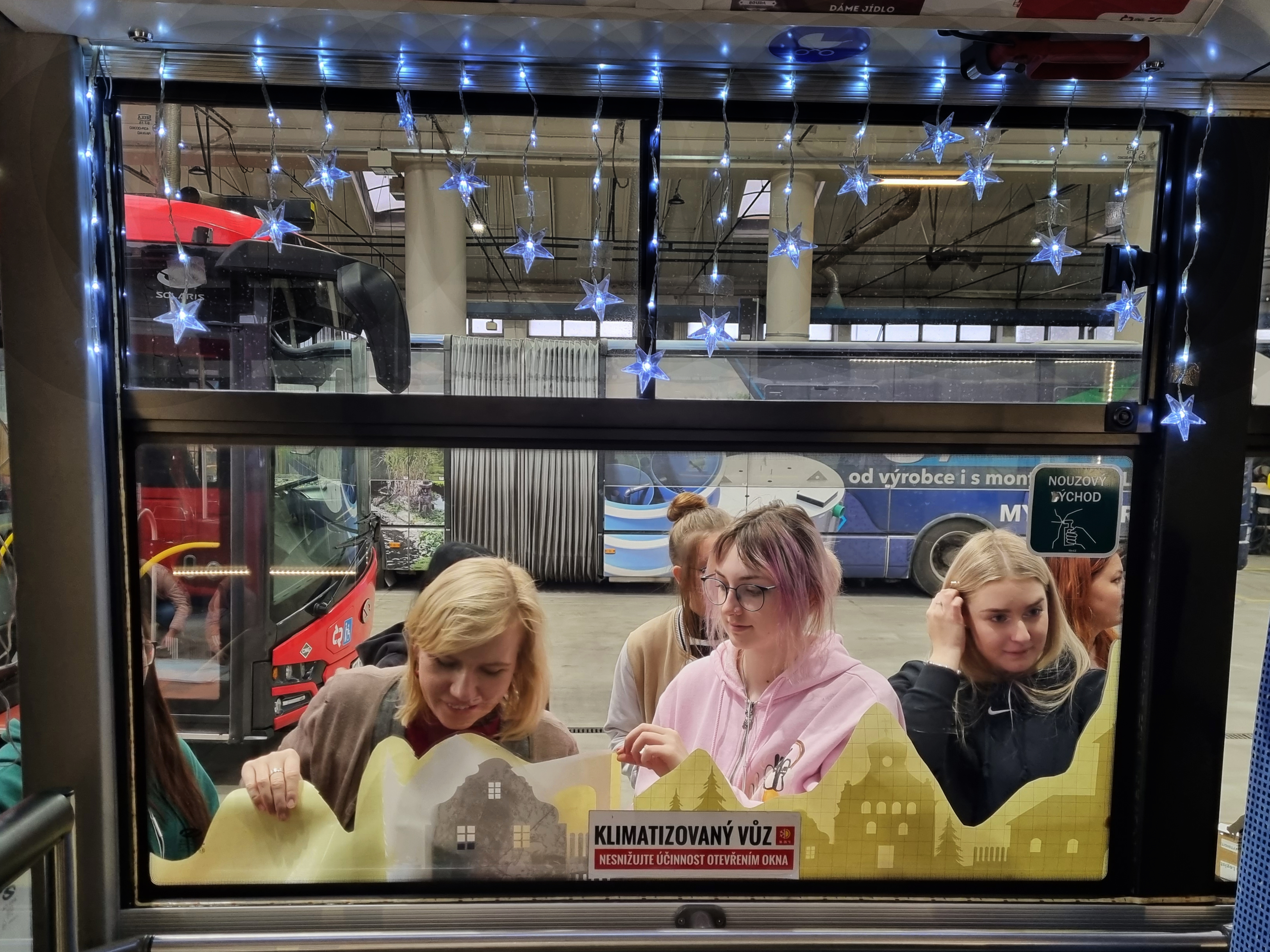 Do zkrášlení adventního autobusu se nově zapojili i studenti oboru Aranžér z českobudějovické Střední školy obchodní. Ti v rámci výuky navrhli, vyřezali a připravili motivy na polep autobusu. V úvodu prvního adventního týdne pak dostali příležitost i sami polep aplikovat v dílně dopravního podniku.