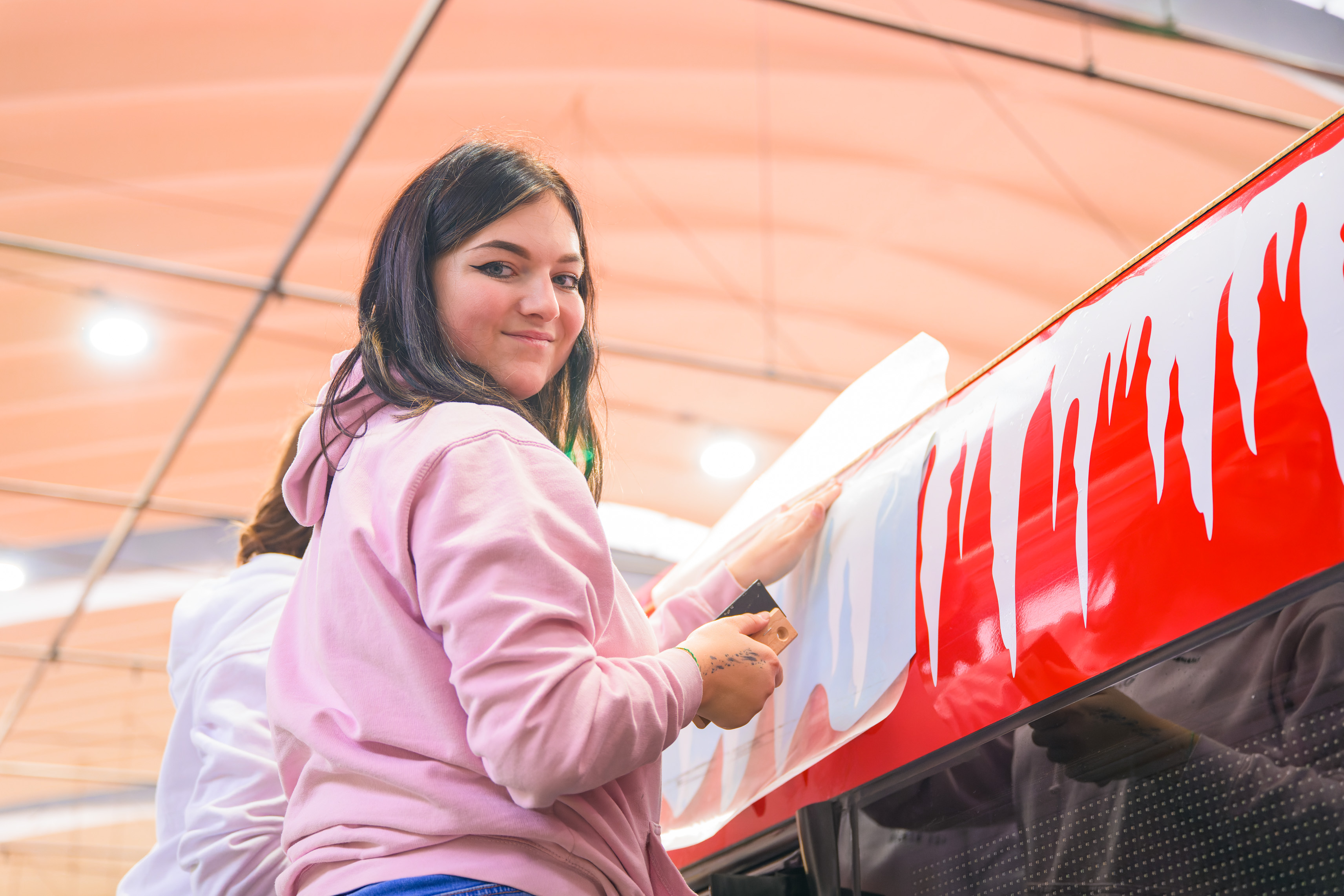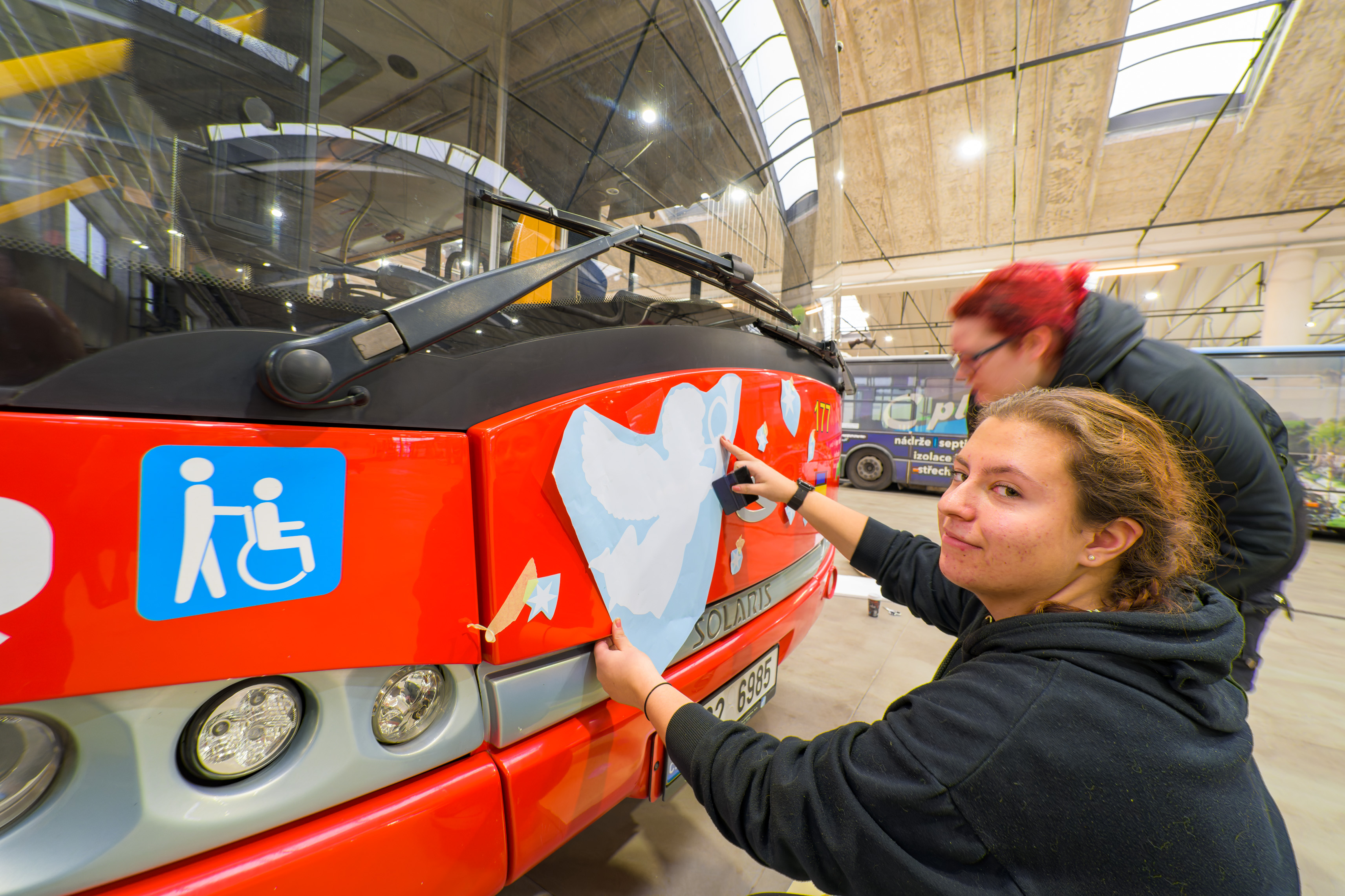„V rámci skupinového projektu studenti druhého ročníku vytvořili grafický návrh a následně se pustili do samotného autorského zpracování siluet vesniček, vloček, rampouchů a nápisů. Také výřezy z fólií dělali žáci pod naším dohledem na řezacím plotteru sami. Polepy vozidel už dříve připravovali, tato zakázka je pro ně ale zatím největší. Pro žáky je to velmi přínosná příležitost, na které se mohou oborově rozvíjet,“ popisuje Kateřina Rossmannová, učitelka aranžérství ze SŠO.