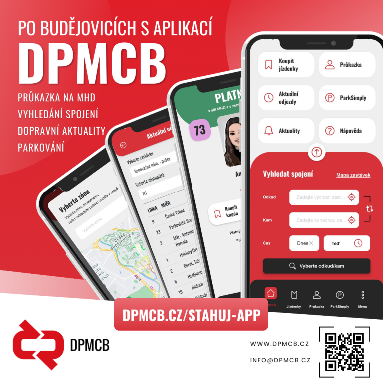 Aplikace DPMCB je multifunkční nástroj pro cestování v Českých Budějovicích nejen MHD. Koupíte v ní předplatní jízdenky na MHD, najdete spojení, zjistíte aktuální informace a zároveň uhradíte i parkování.