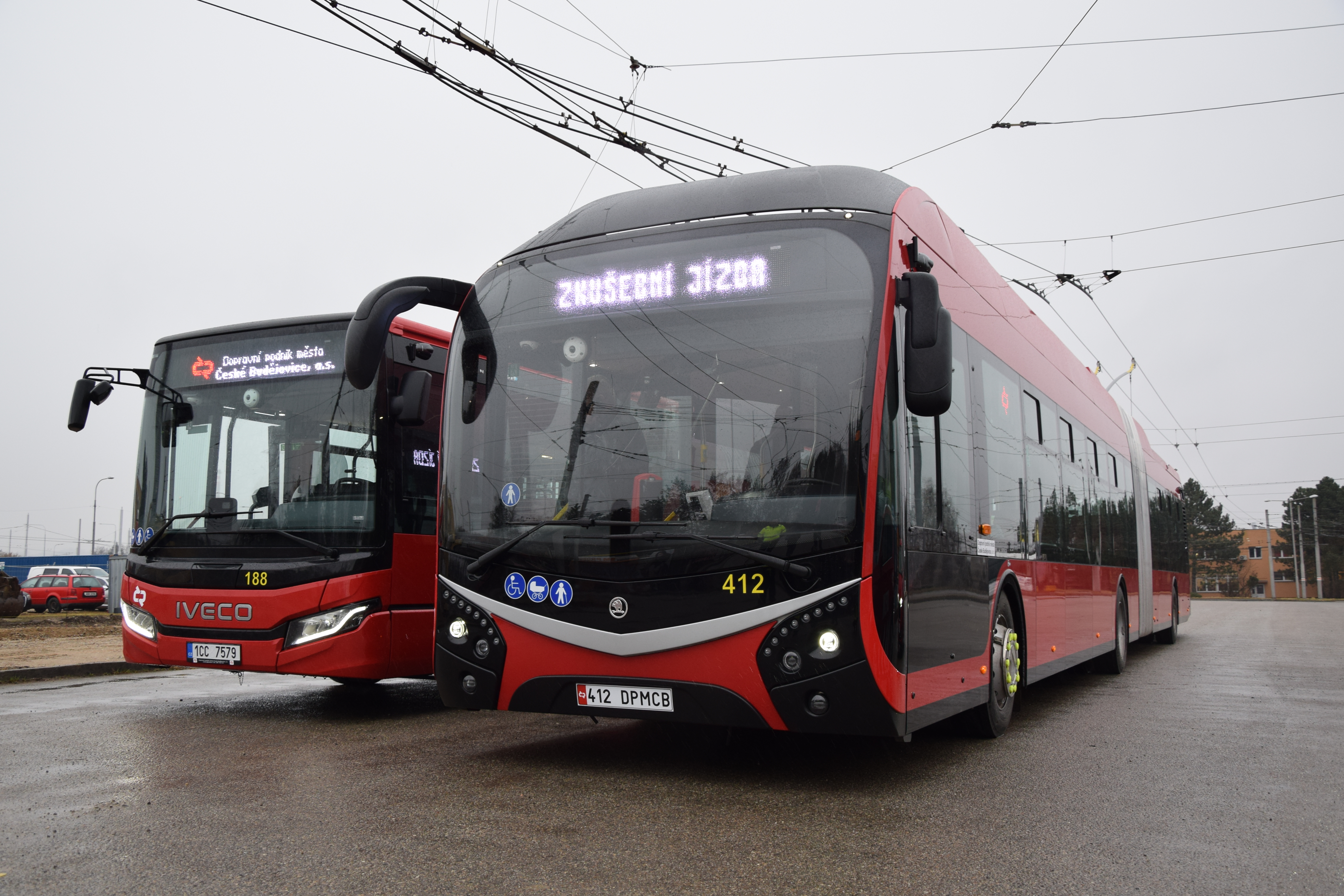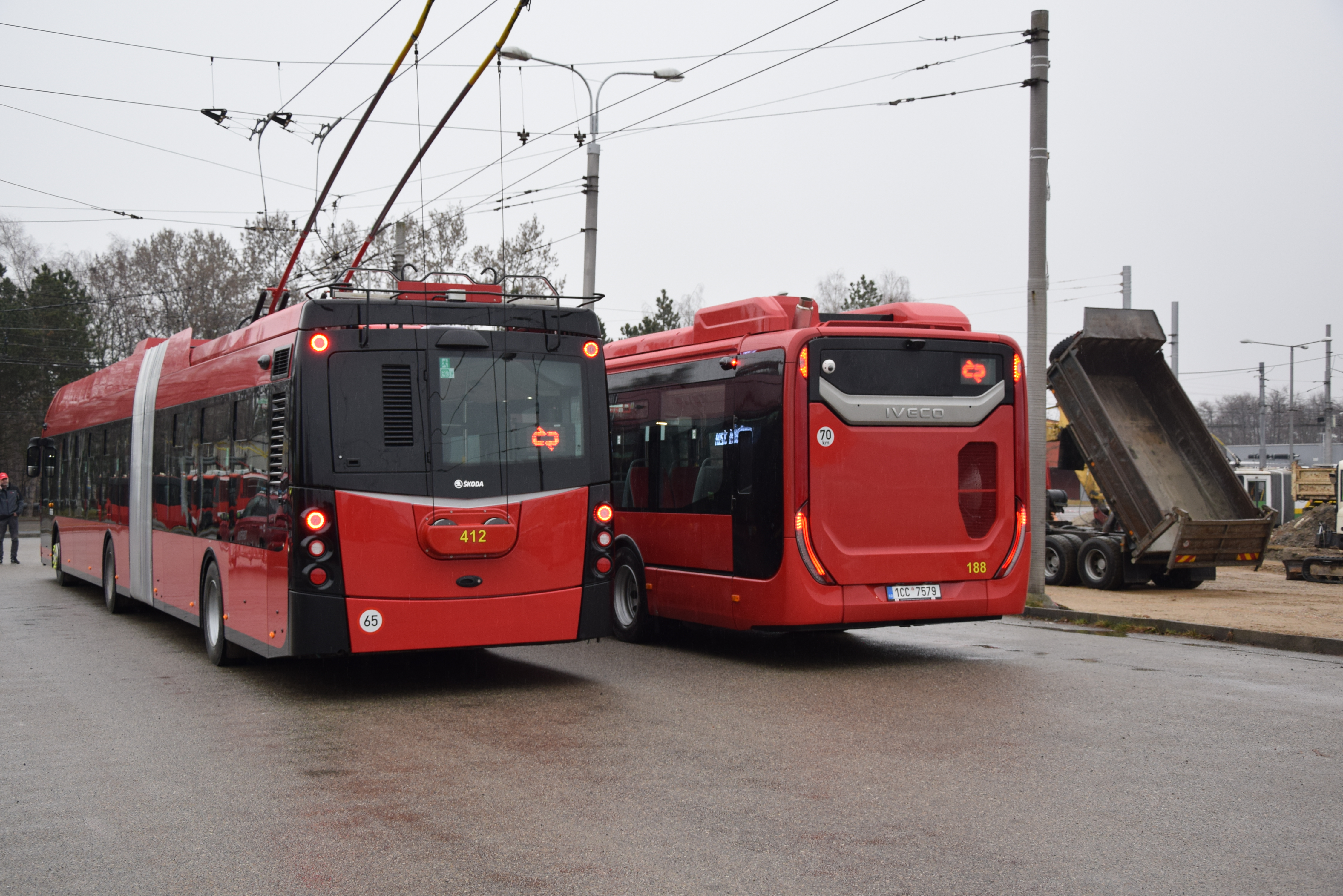 Trolejbus Škoda 33Tr představil podnik spolu s jedním z 6 novch autobusů IVECO Urbanway s mild-hybridním pohonem.