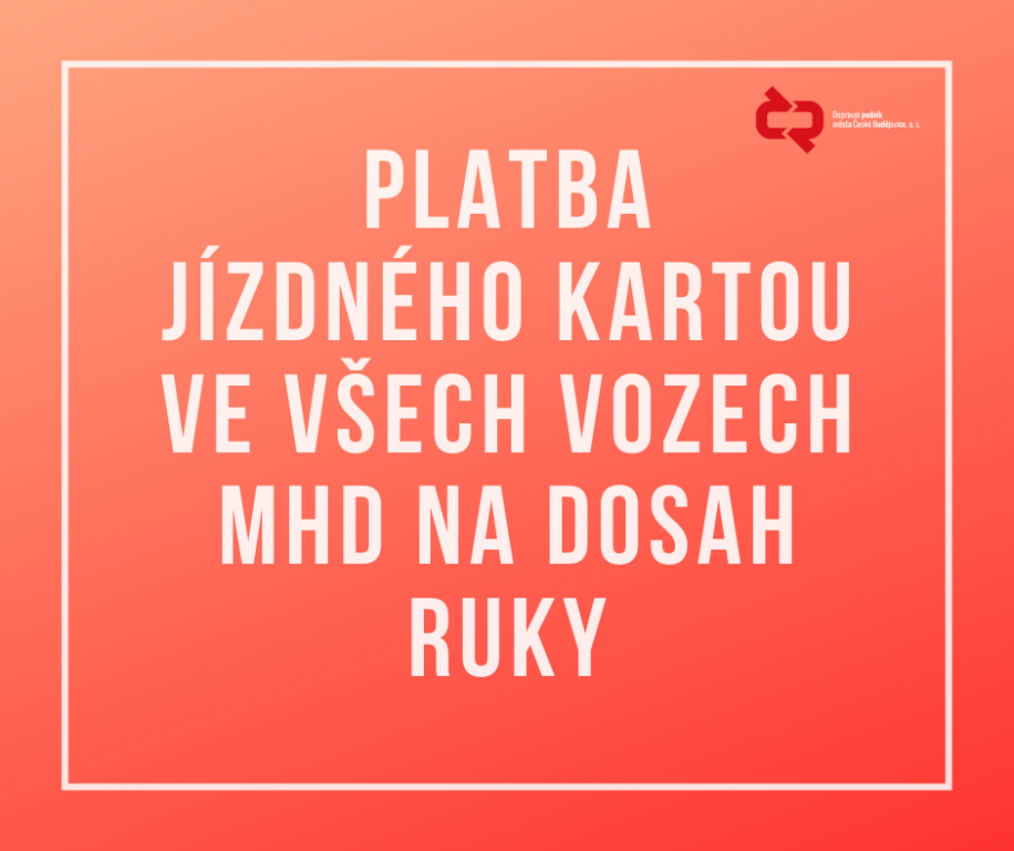 Dopravní podnik úspěšně dokončil soutěž na nový odbavovací systém, který umožní platbu jízdného kartou v každém voze českobudějovické MHD. Jedná se o součást velkého projektu modernizace palubních technologií vozidel a dopravního dispečinku. Realizace projektu již byla zahájena a bude dokončena v první polovině příštího roku.