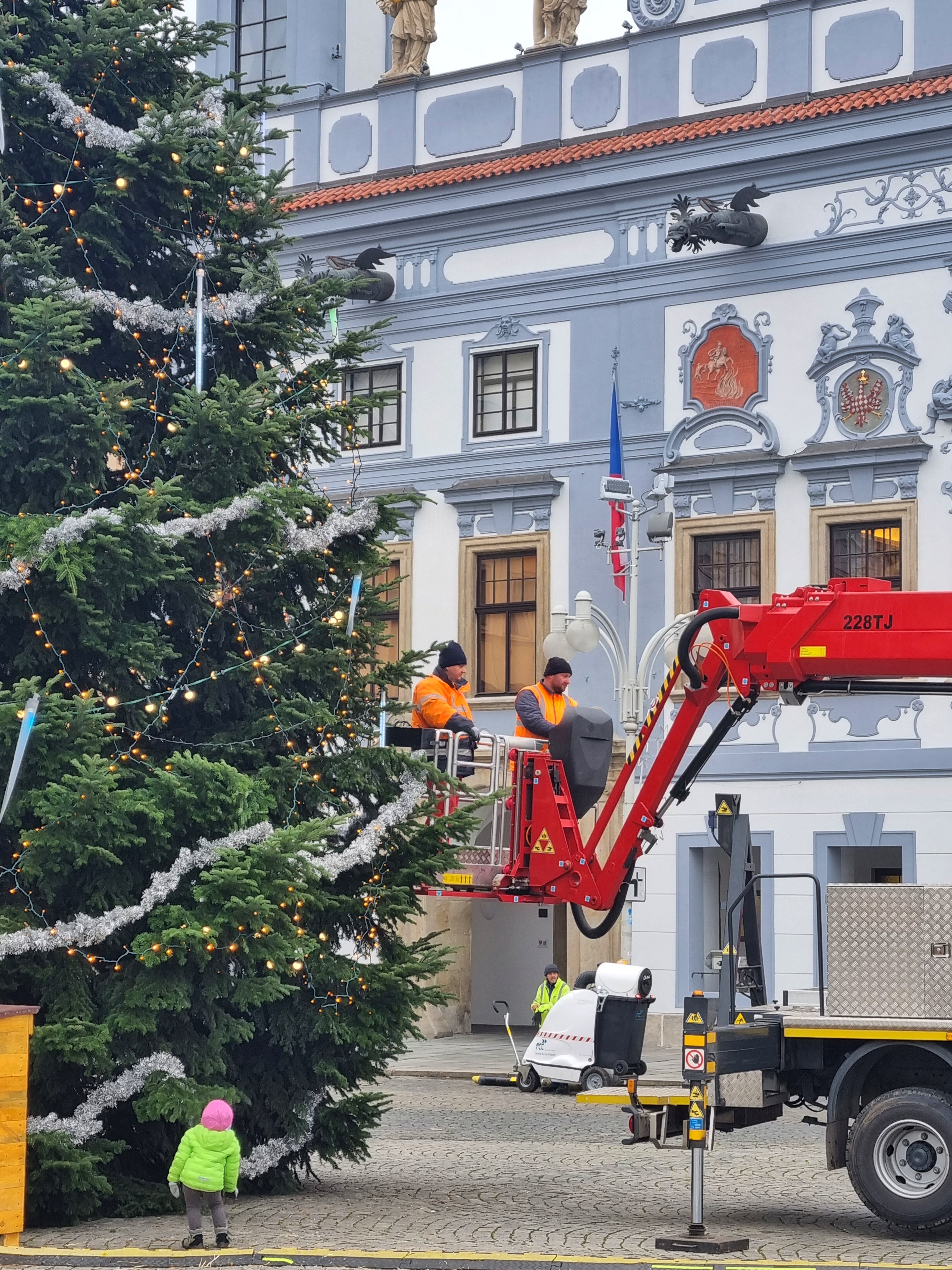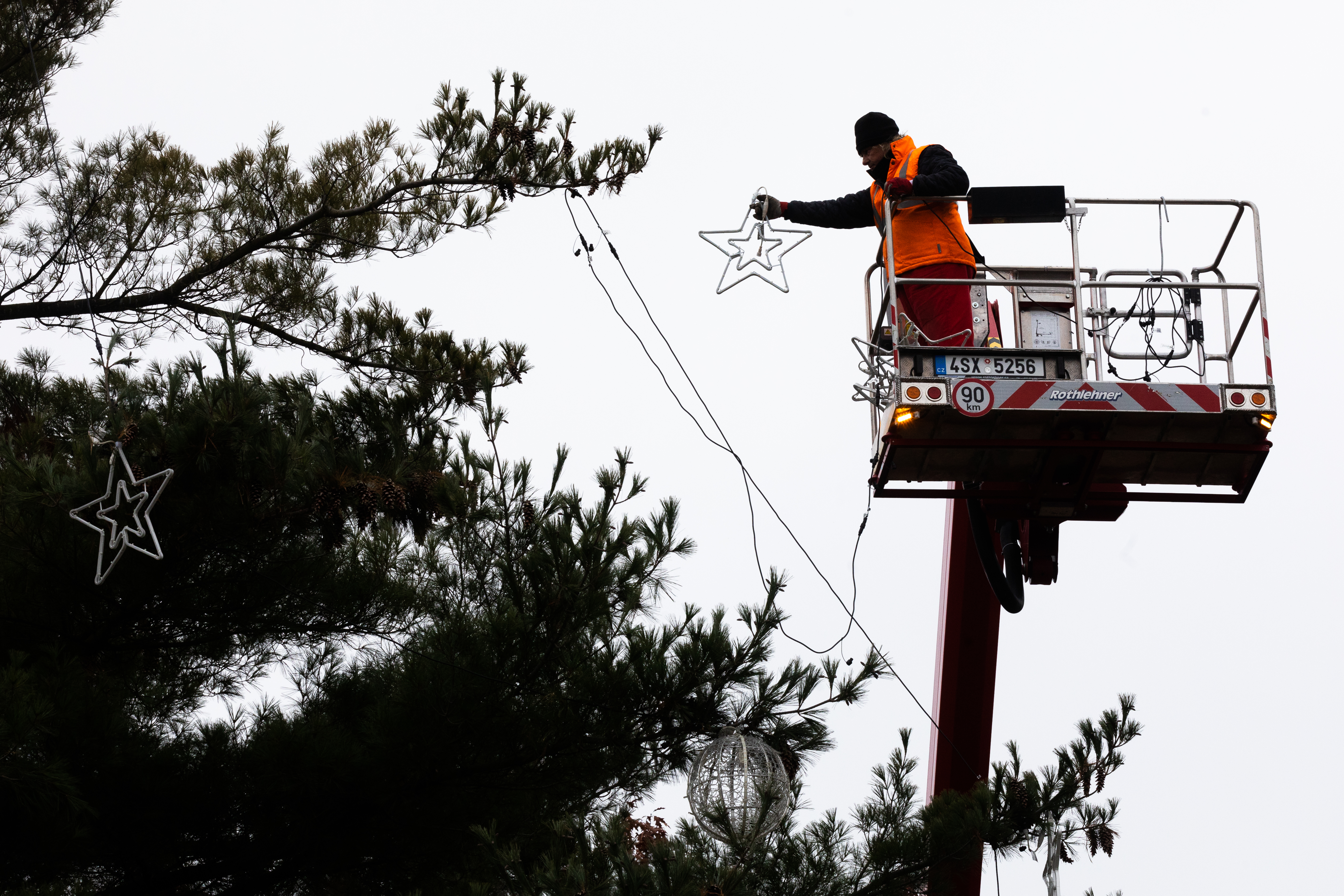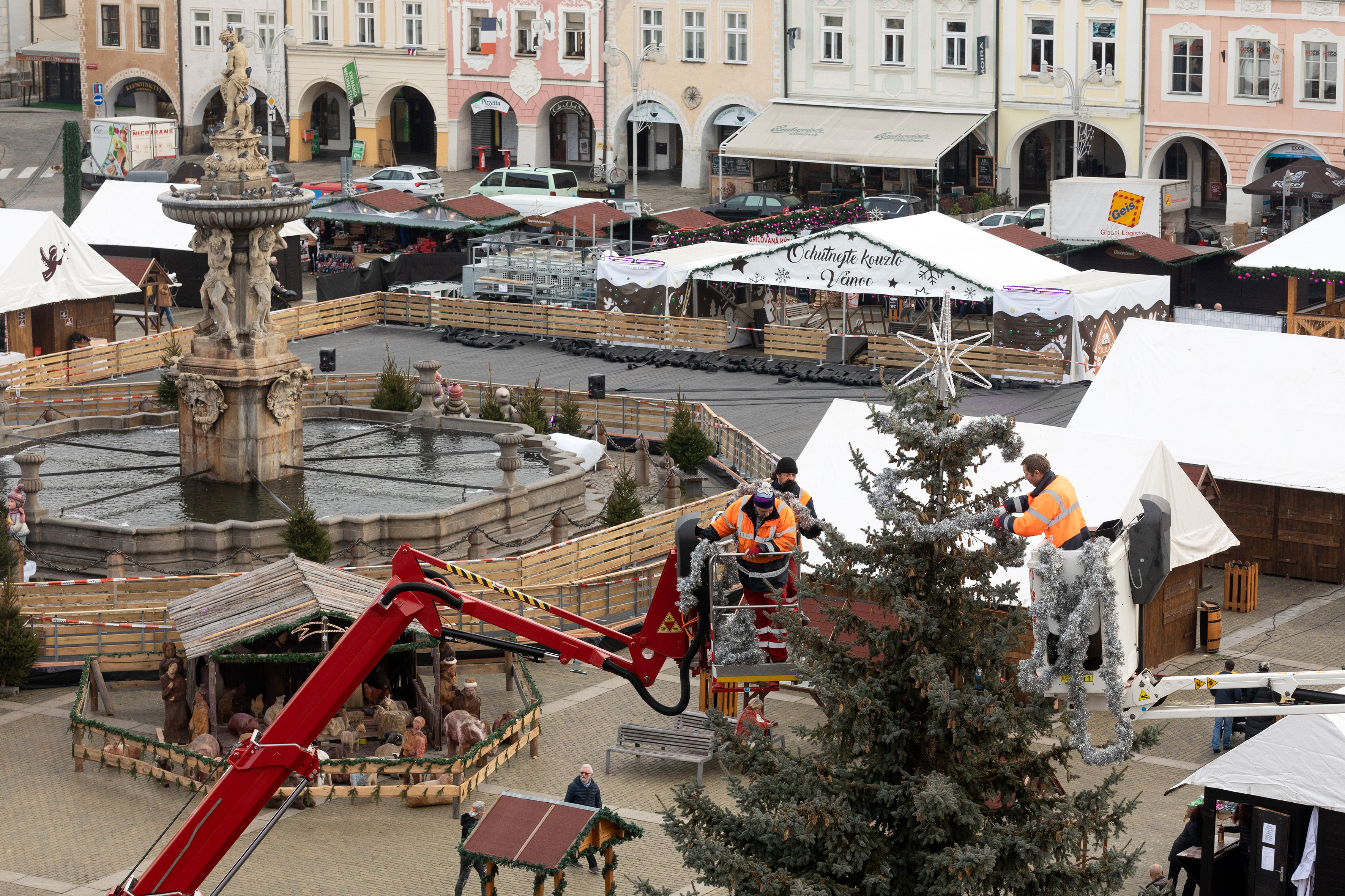 Zdobení vánočního stromu před českobudějovickou radnicí, který pravidelně obyvatelé hodnotí jako nejhezčí v ČR, by opět mělo trvat 3 dny. Z vysokozdvižných plošin technici na strom zavěsí ozdoby a světelné prvky, které následně napojí na řídící techniku. Kromě hlavního vánočního stromu už stačili během listopadu ozdobit stromy na Senovážném a Mariánském náměstí, na Žižkově třídě, na sídlištích Vltava, Máj a Šumava, a také v Kališti. Na konci listopadu se ozdob dočká také stromek v Suchém Vrbném.