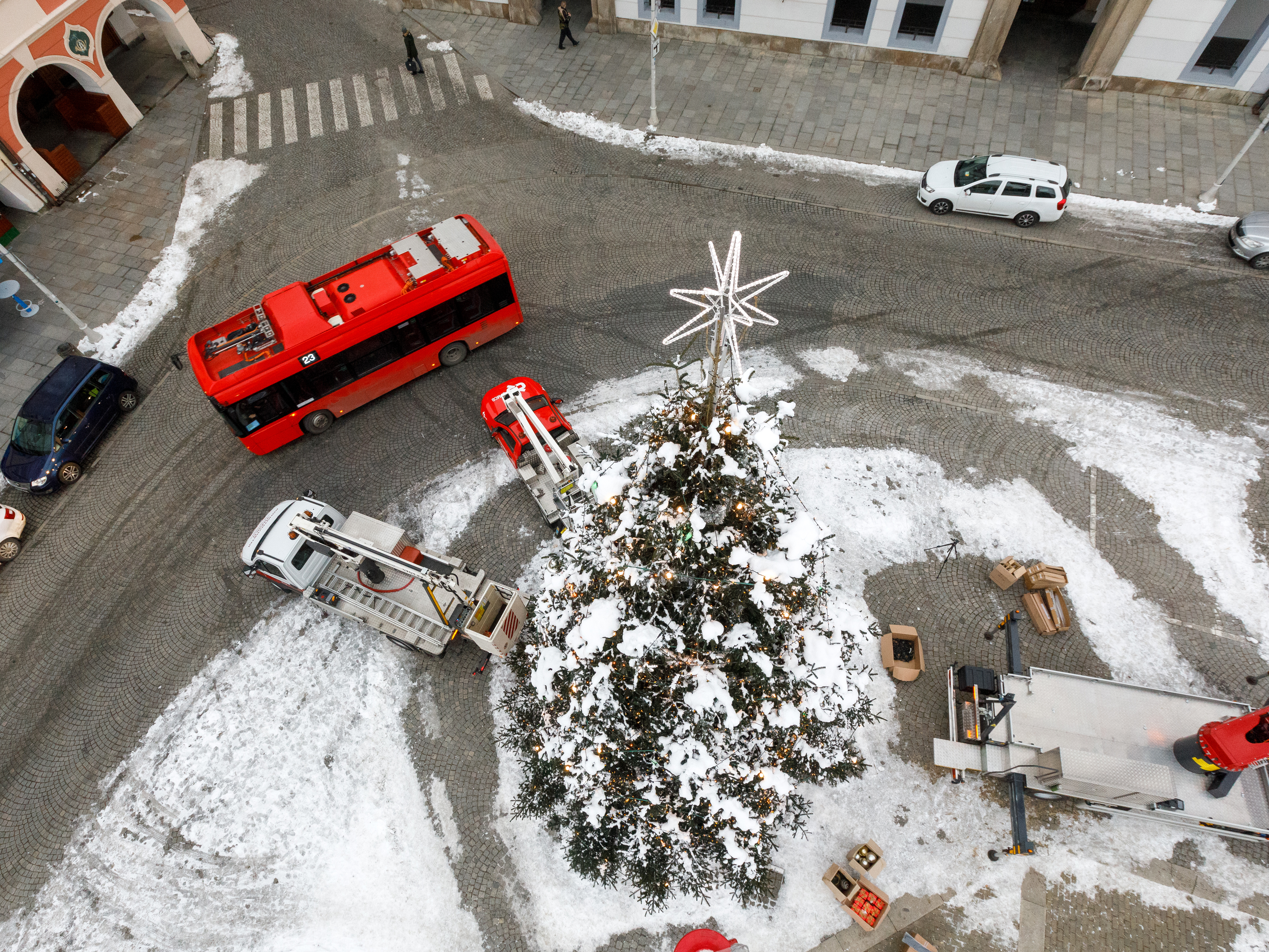 Fotografie a video z letošního zdobení stromu na Mariánském náměstí (DPMCB):