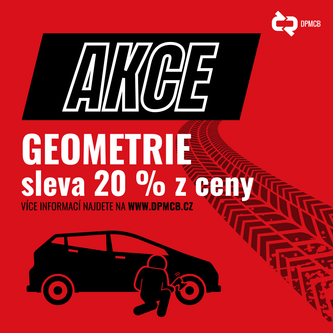 Využijte 20% slevu na geometrii v našem autoservisu a připravte své auto na sezónu! Akce platí od začátku listopadu do konce prosince. Rezervujte si svůj termín co nejdříve na 736 510 925 nebo e-mailem na adrese servis@dpmcb.cz.